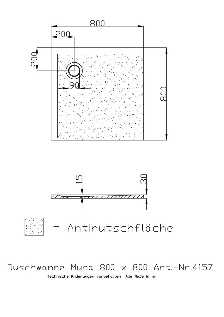 Hoesch Mineralguss-Duschwanne Muna 80 x 80 x 3 cm, weiß matt, Antirutsch K20735541