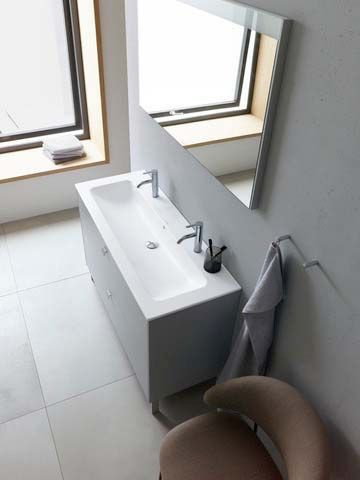 Duravit Möbel-Waschtisch Me by Starck 123x49cm, 2 Hahnlöcher, mit Überlauf, Hahnlochbank, weiß seidenmatt
