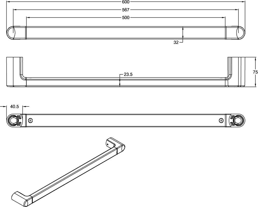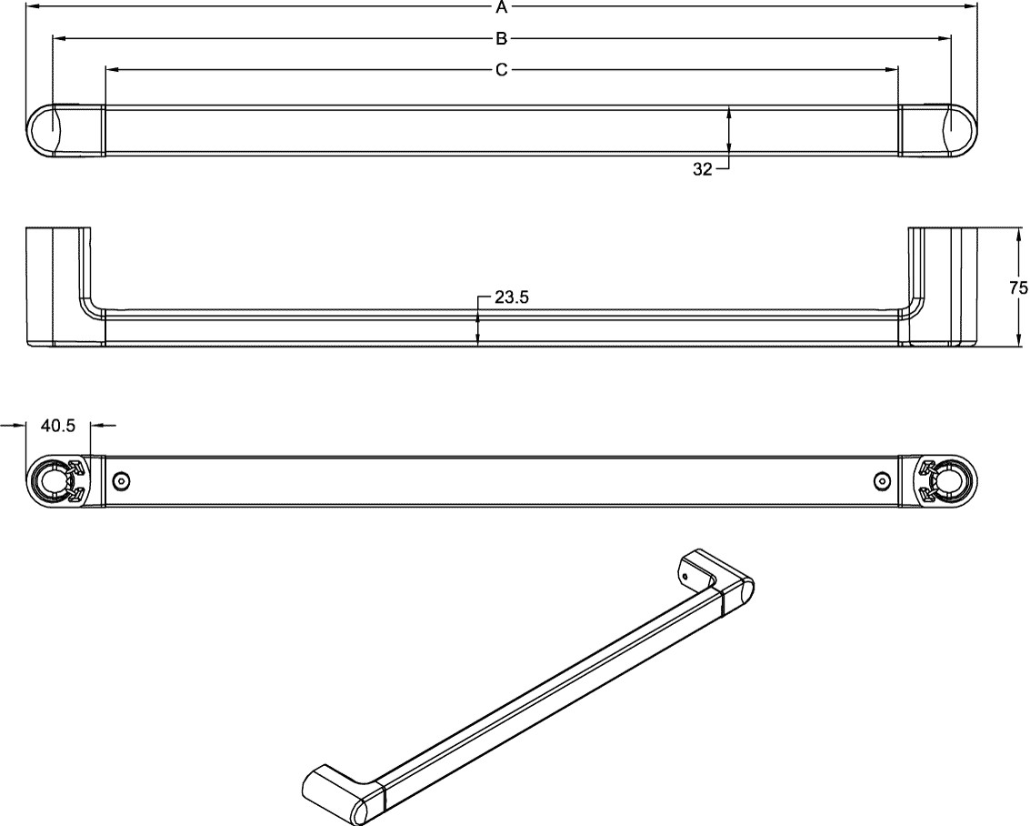 V&B Wandhaltegriff Vicare Design 60 cm, vertikal oder horizontal, Aluminium verchromt