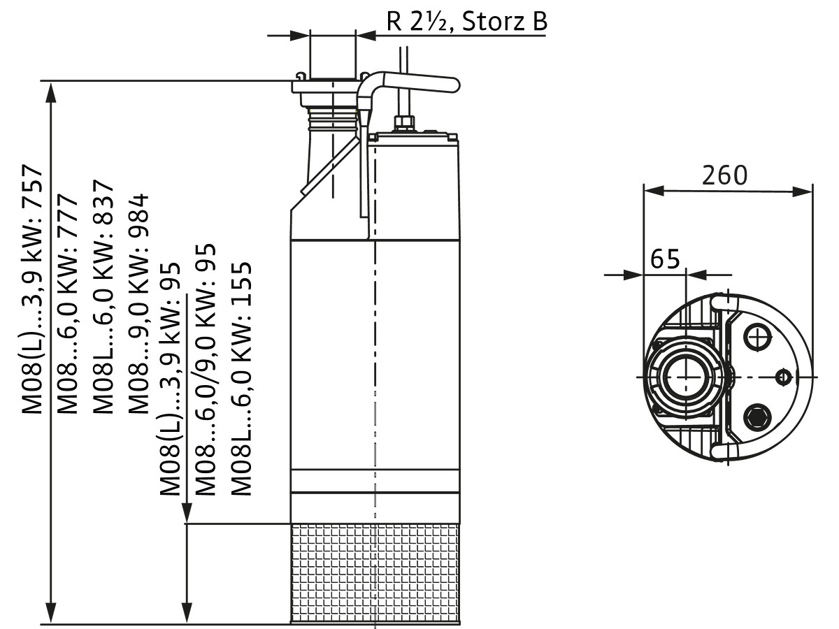 Wilo Schmutzwasser-Tauchmotorpumpe Padus PRO M08/T039-540/O, 3,9 kW, Storz B, 400 V K20555743