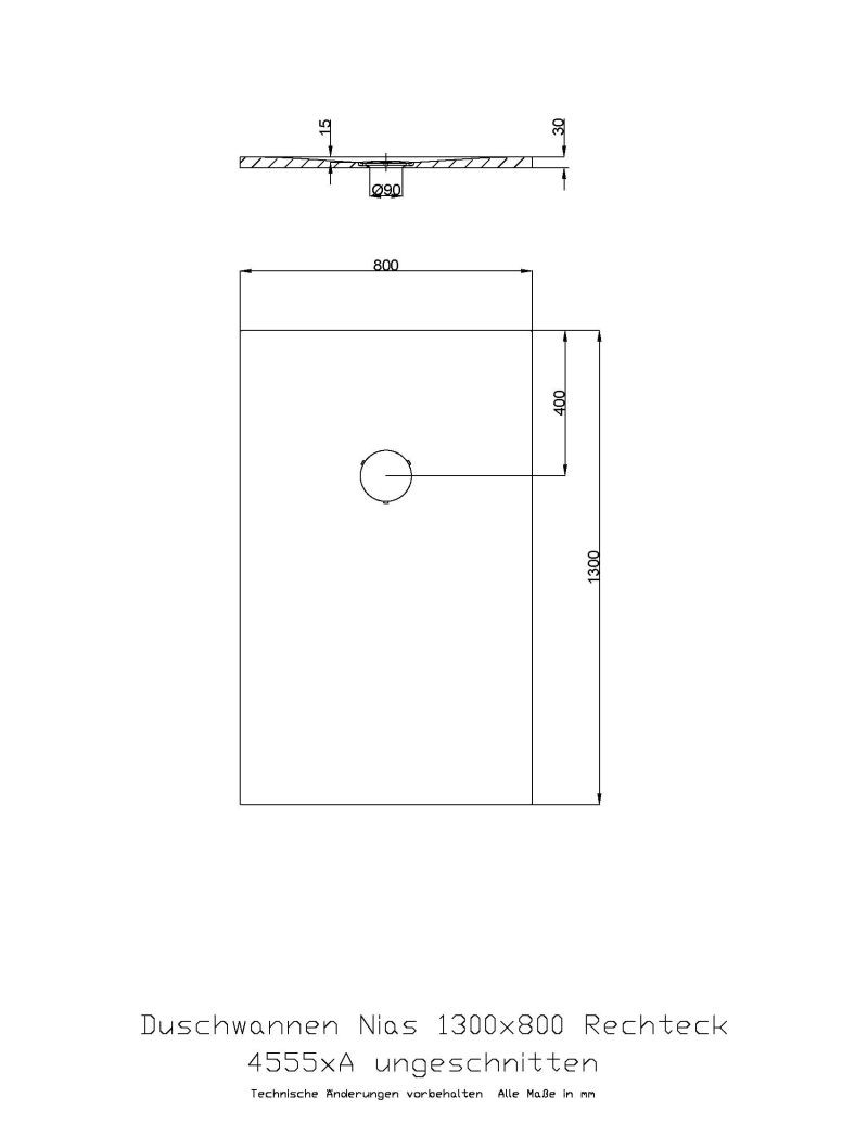 Hoesch Mineralguss-Duschwanne Nias 130 x 80 x 3 cm, schiefergrau, Solique, ungeschnitten