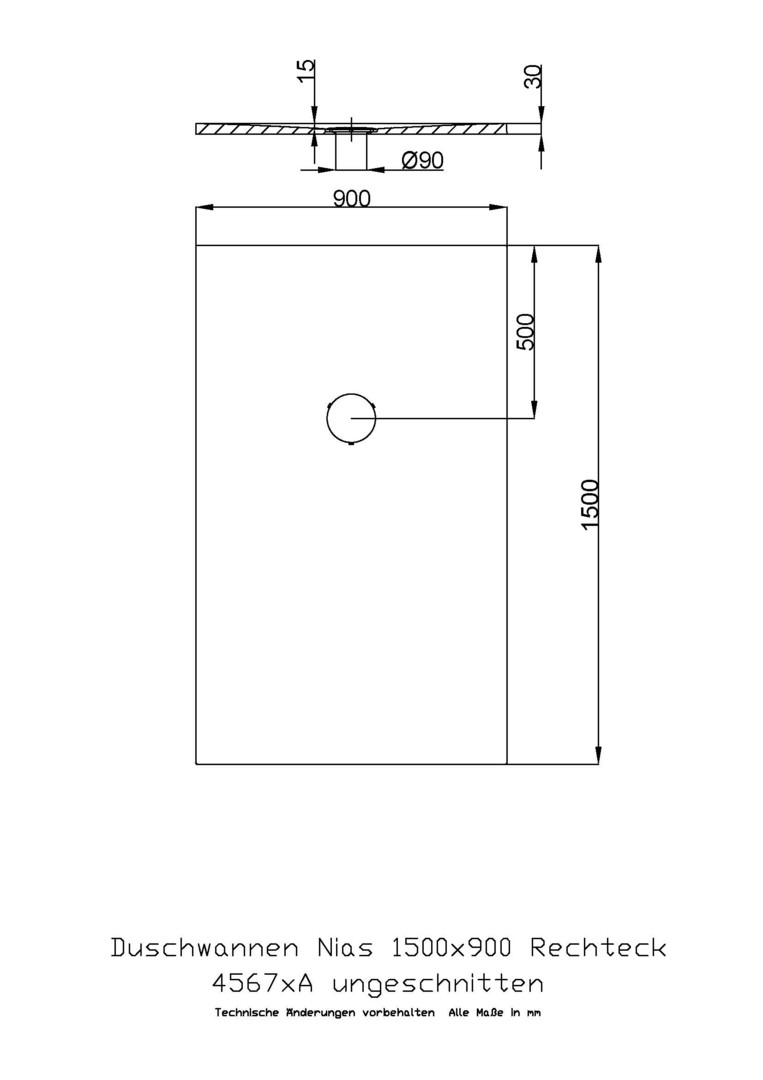 Hoesch Mineralguss-Duschwanne Nias 150 x 90 3,5 cm, schiefergrau, Solique, ungeschnitten