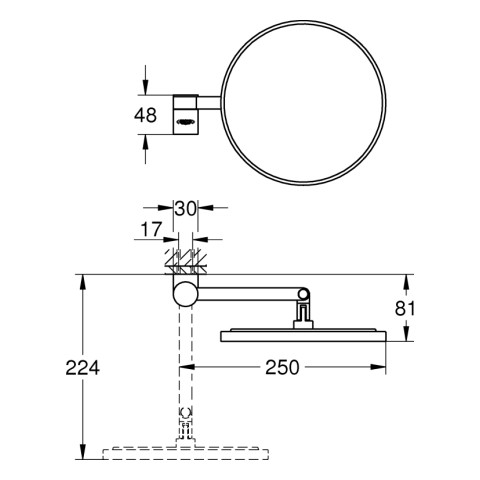 GROHE Kosmetikspiegel Selection ohne Beleuchtung, 7-fache Vergrößerung, verdeckte Befestigung, chrom K20552655