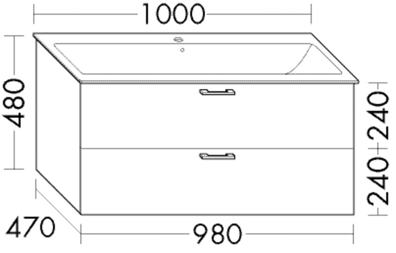 FORMAT Design Waschtisch-Unterschrank WWCQ098 980x480x470mm, 1 Schublade/1 Auszug, weiß Matt K23243930