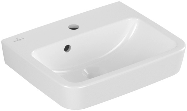 V&B Einbau-/Aufsatz Handwaschbecken O.NOVO 45x37cm, eckig, mit Hahnloch, mit Überlauf, weiß C-plus