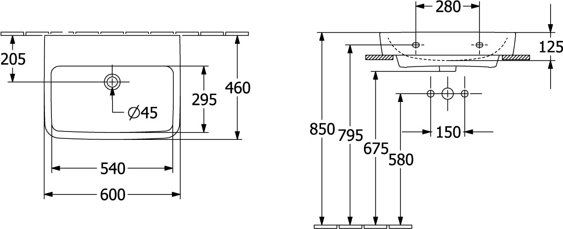 V&B Einbau-/Aufsatz-Waschtisch O.NOVO 60x46cm, eckig, mit Hahnloch, mit Überlauf, weiß K20563495