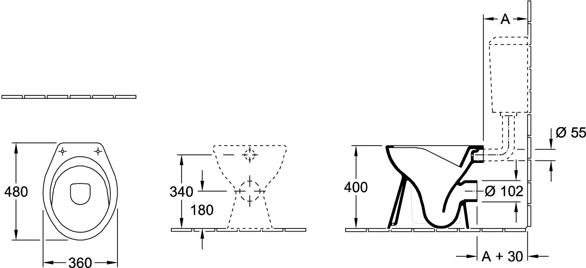 V&B Stand-Tiefspül-WC O.NOVO 36x48cm, spülrandlos, Abgang waagerecht, weiß K20563612