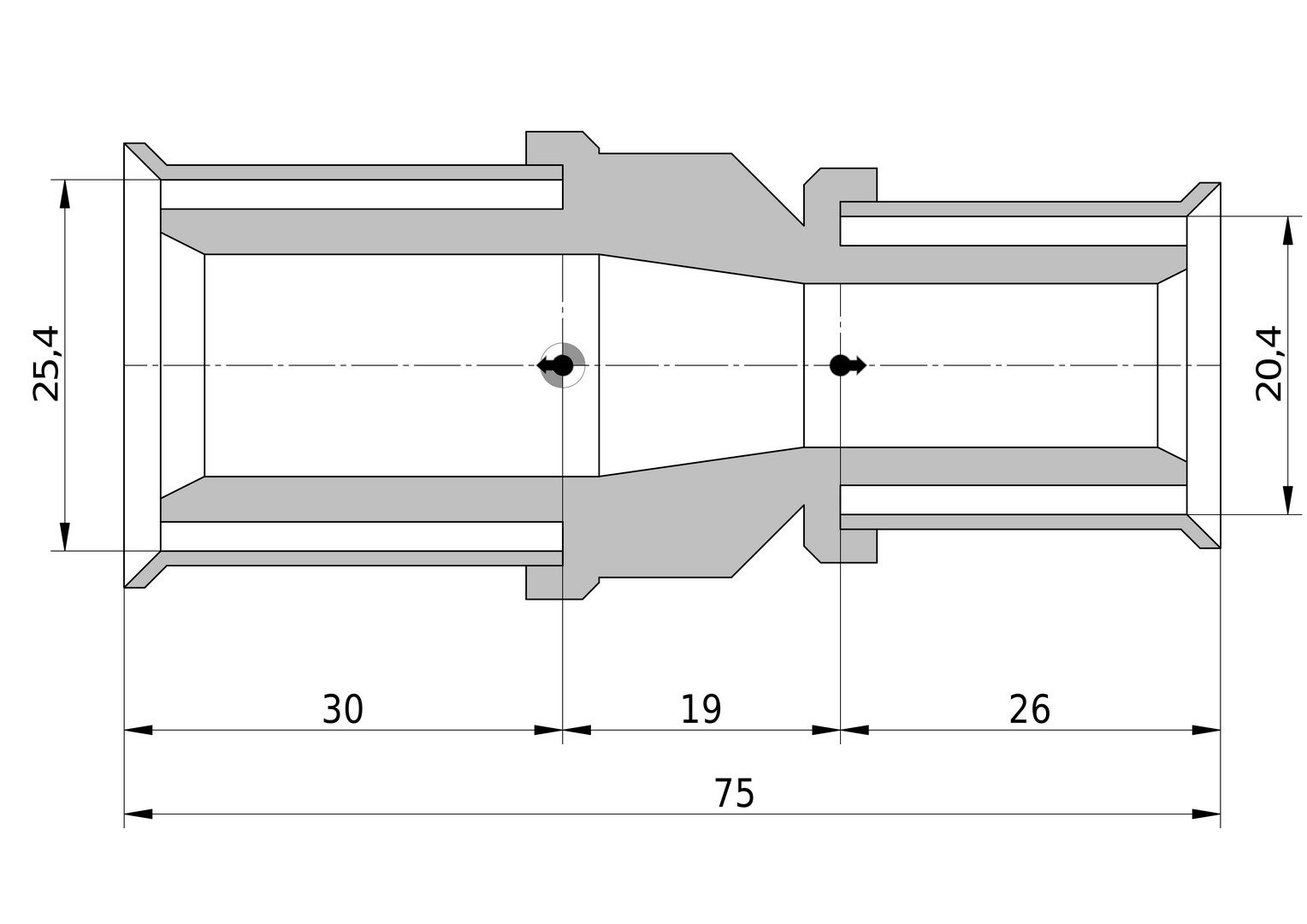 | Rohraußendurchmesser Anschluss 1 | 25 mm |