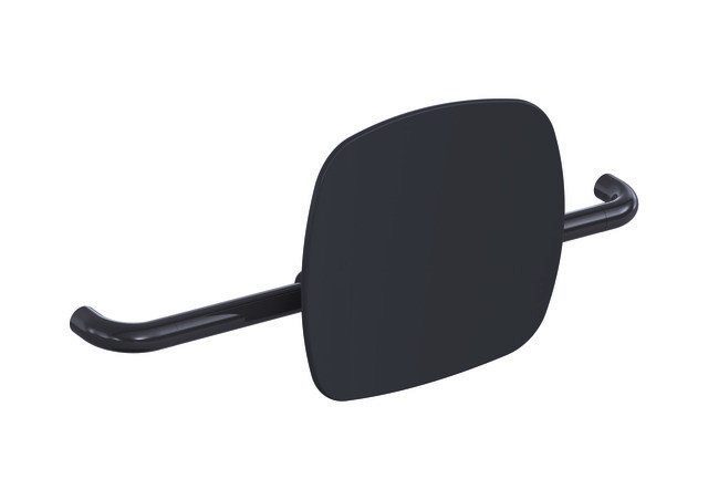beidseitig angebrachte, rechtwinklig gebogene Befestigungsstangen, mit durchgehendem, korrosionsgeschütztem Stahlkern, Montage an Stützklapp-/Wandstützgriffen mit Wandplatte Serie 801, Achsmaß von 650-750 mm bauseits verstellbar, 150 mm tief, Stangen 33 mm, Lehne 370 x 334 mm, erfüllt die Anforderungen nach DIN 18040 und ÖNORM B 1600/1601