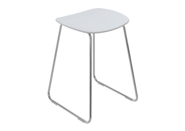 Sitzfläche aus Kunststoff, leicht texturiert, belastbar bis 150 kg, 370 x 500 x 382 mm, Sitzfläche 370 x 334 mm, Sitzhöhe 480 mm, Gestell verchromt, mit rutschhemmenden Fußstopfen