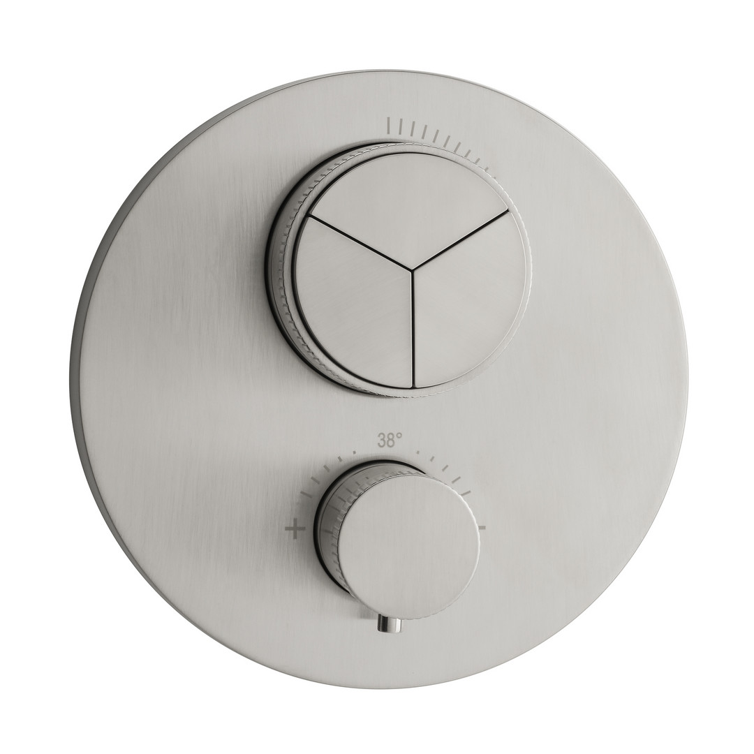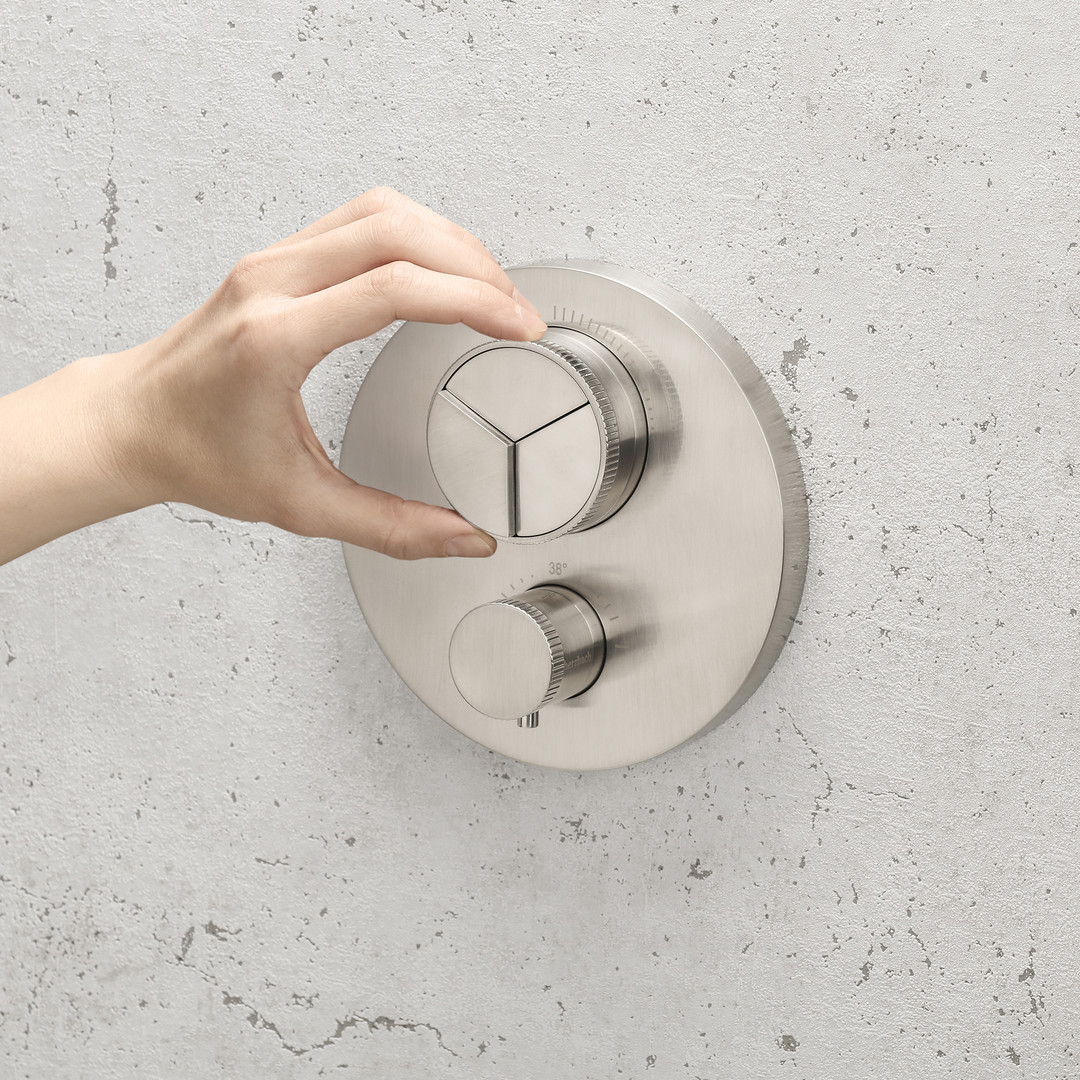 Herzbach Fertigmontageset Living PUSH round UP-Thermostat, 3 Verbraucher, Edelstahl gebürstet K15850107