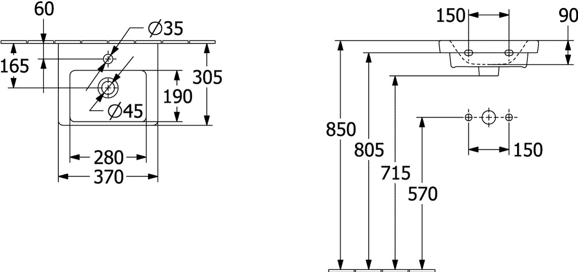 | Anzahl der Hahnlöcher je Waschplatz | 1 |