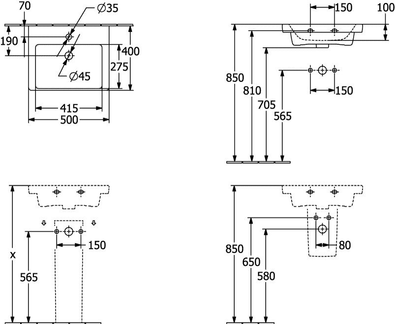 | Anzahl der Hahnlöcher je Waschplatz | 1 |