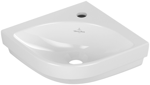 V&B Eck-Handwaschbecken Subway 3.0 32cm Schenkellänge, eckig, mit Hahnloch/ohne Überlauf, weiß C-plus K20563023