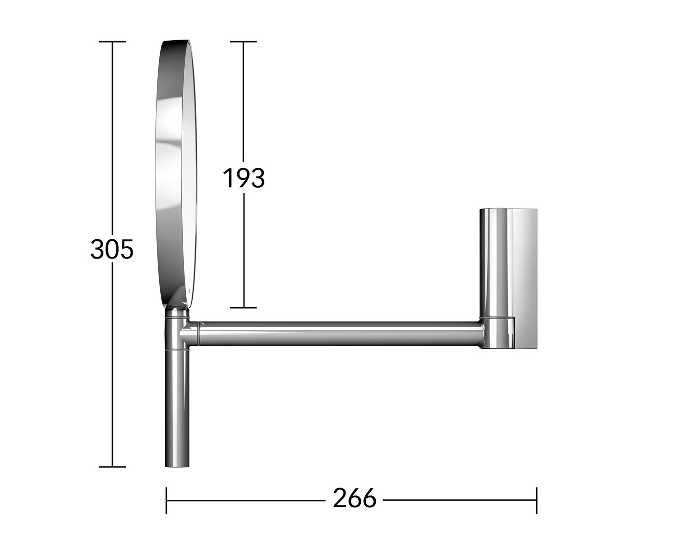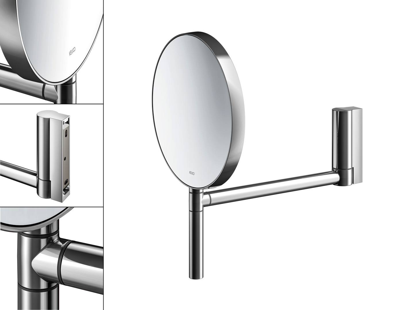 Wandmontage, 3-dimensionaler Gelenkarm, Spiegel zweiseitig, konkav/Plan, Vergrößerungsfaktor x5