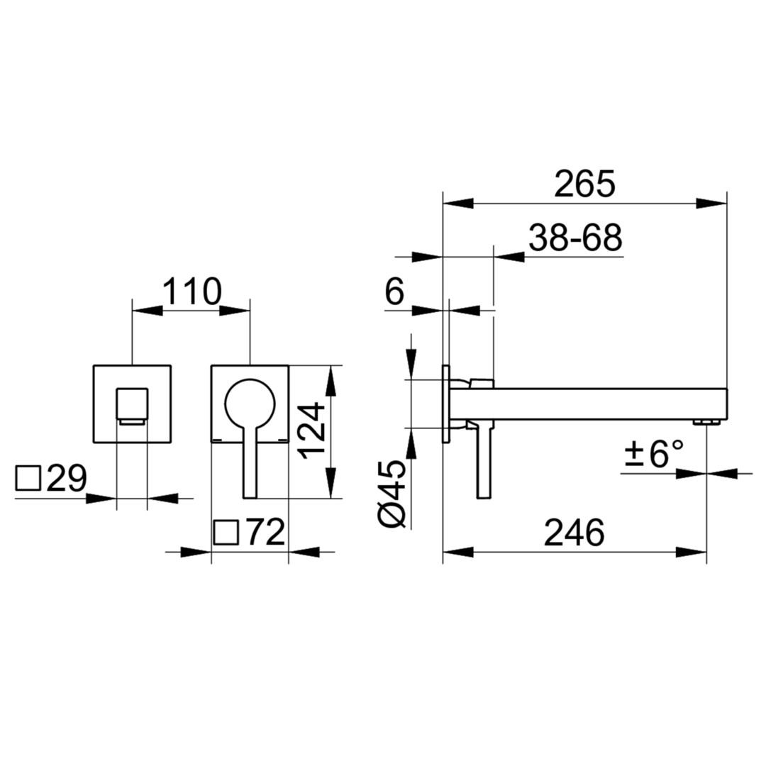 KEUCO Fertigmontageset Edition 90 Square UP-Waschtisch-2-Loch-Wandarmatur, verchromt, ohne Ablaufgarnitur, Ausladung 246 mm