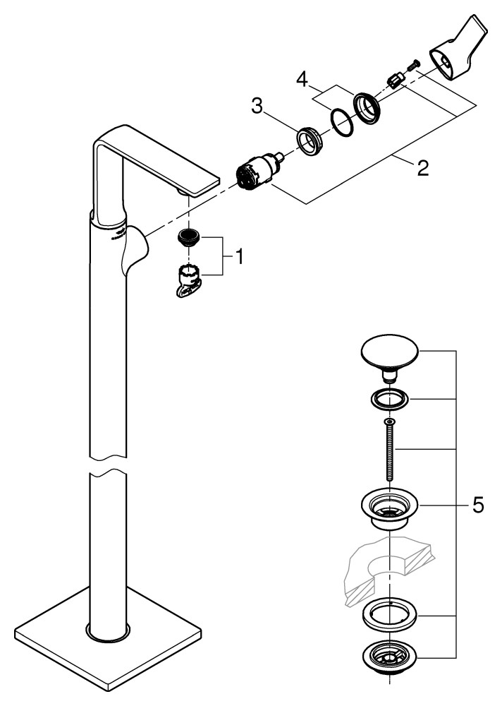 GROHE Fertigmontageset Allure für Wannen-Einhebelmischer, mit Push-open Ablaufgarnitur, glatter Körper, chrom
