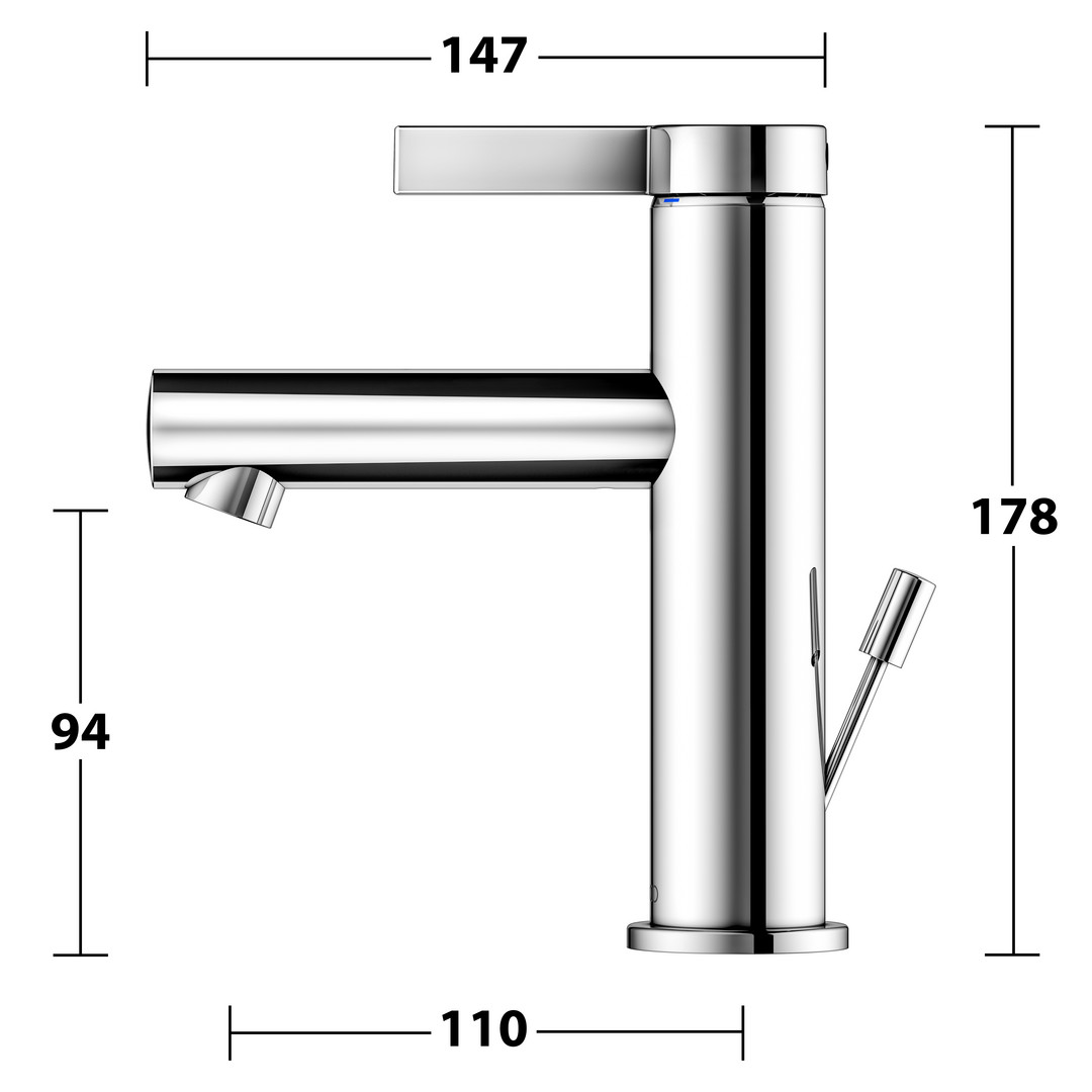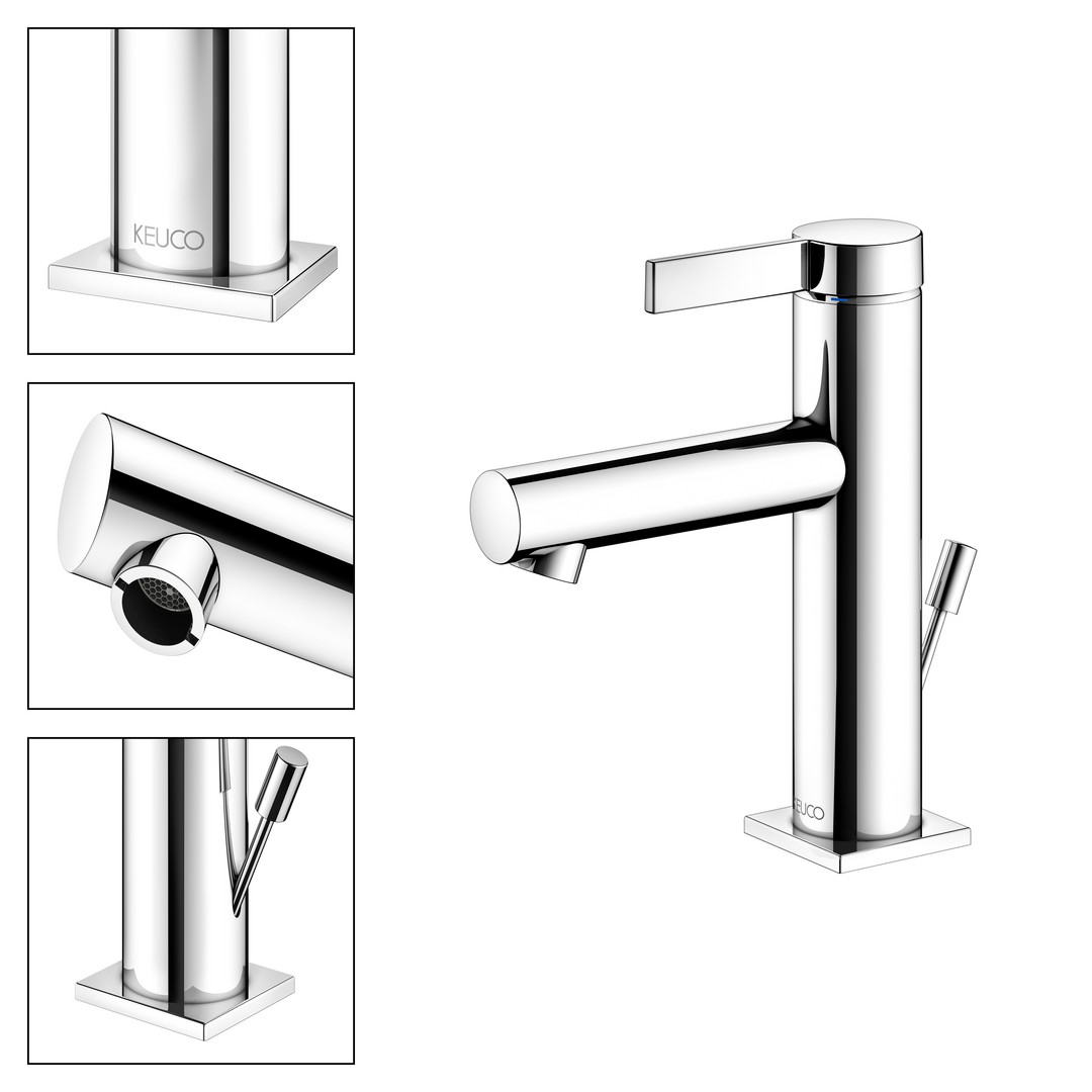 KEUCO Waschtisch-Einhebelmischer 100 IXMO Pure Ausladung 110mm, mit Ablaufgarnitur, verchromt
