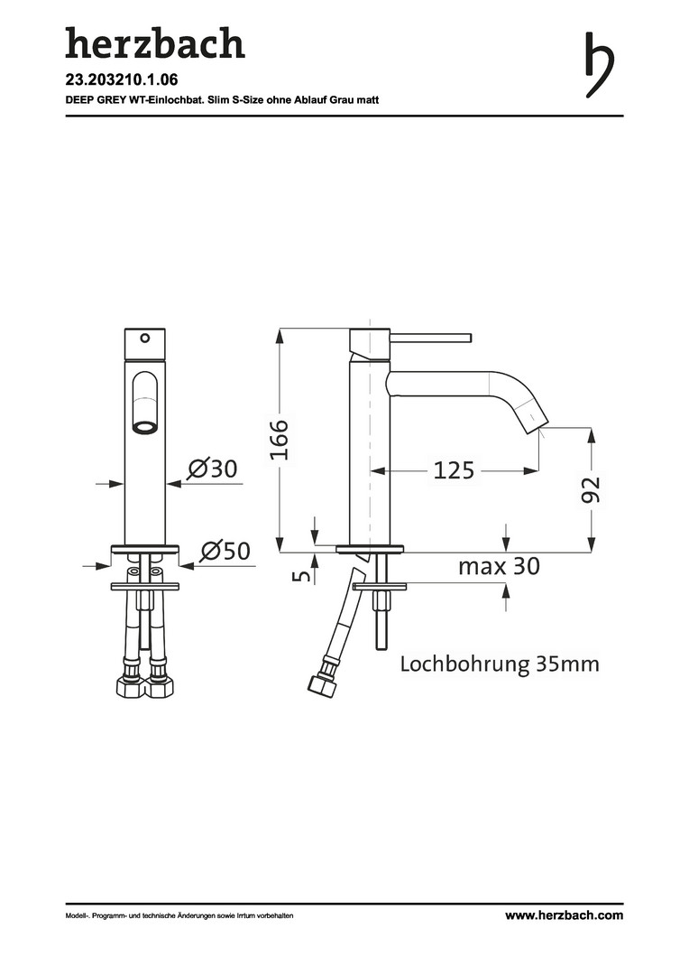 Herzbach Waschtisch-Einhebelmischer Deep slim S-Size, ohne Ablaufgarnitur, grau matt