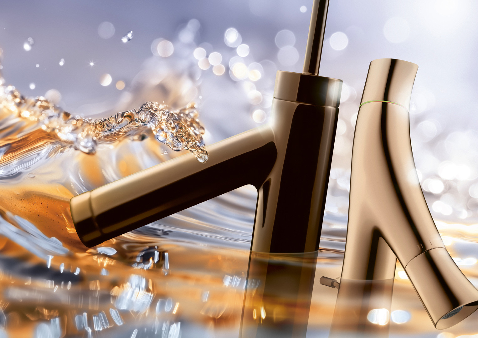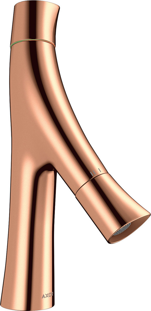 hansgrohe Waschtisch-Zweigriff-Armatur 80 Axor Starck Organic Ausladung 116mm, unverschließbare Ablaufgarnitur, polished red gold
