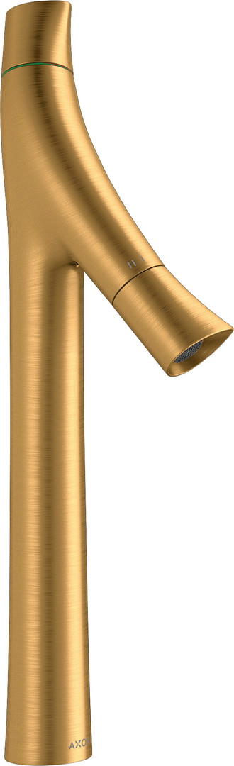 hansgrohe Waschtisch-Zweigriff-Armatur 240 Axor Starck Organic Ausladung 124mm, unverschließbare Ablaufgarnitur, brushed brass