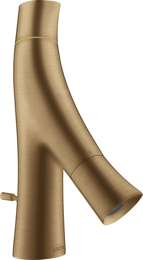 hansgrohe Waschtisch-Zweigriff-Armatur 50 Axor Starck Organic Ausladung 109mm, mit Zugstangen-Ablaufgarnitur, für Handwaschbecken, brushed bronze