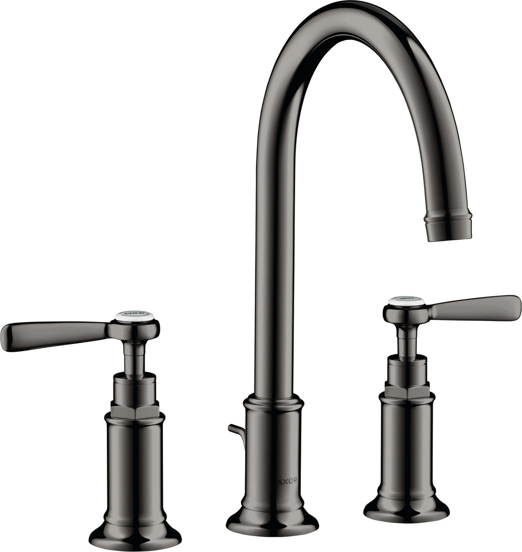 hansgrohe 3-Loch-Waschtischarmatur 180 Axor Montreux Ausladung 175mm, mit Hebelgriffe, Zugstangen-Ablaufgarnitur, polished black chrome