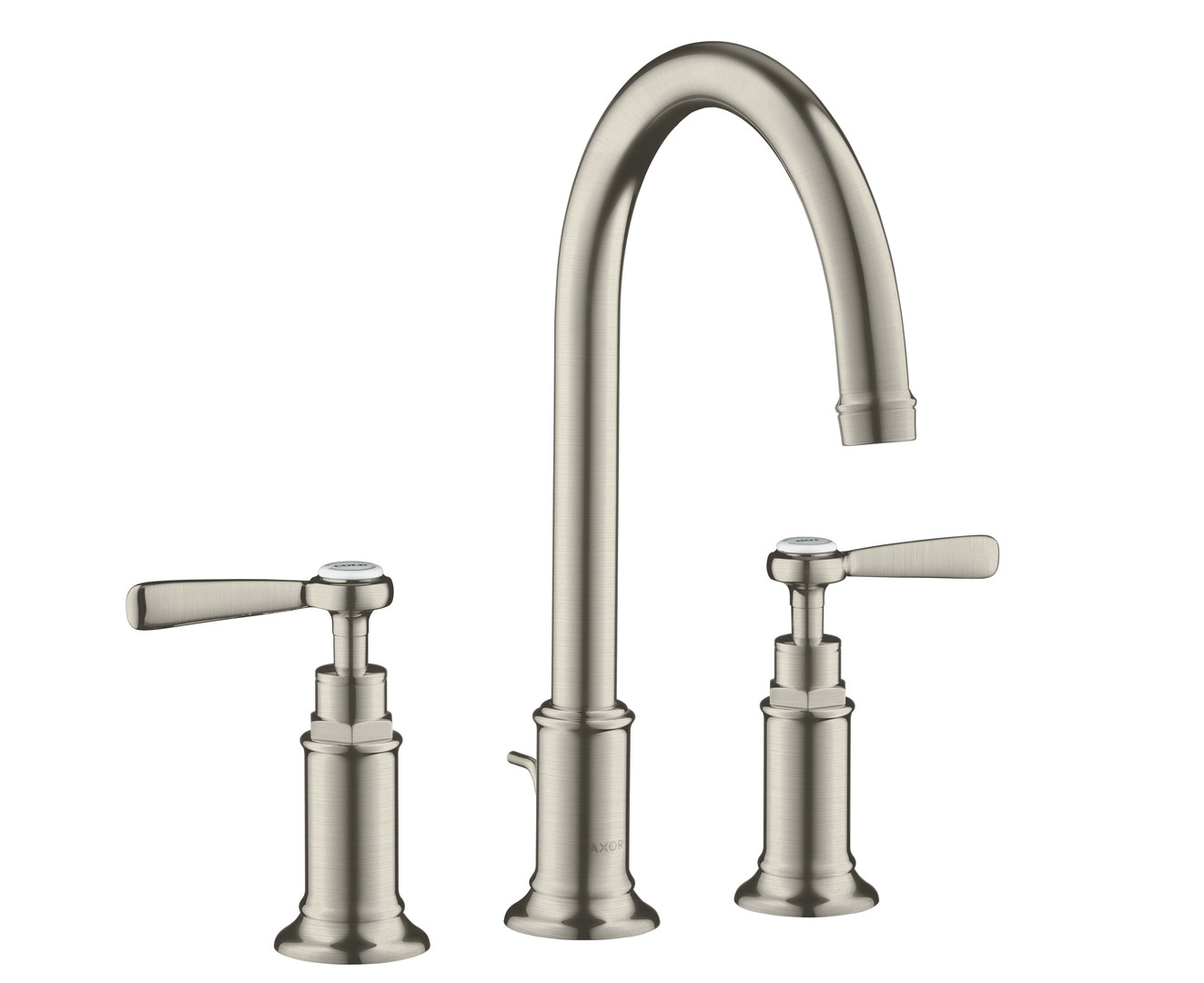 hansgrohe 3-Loch-Waschtischarmatur 180 Axor Montreux Ausladung 175mm, mit Hebelgriffe, Zugstangen-Ablaufgarnitur, Edelstahl-Optik