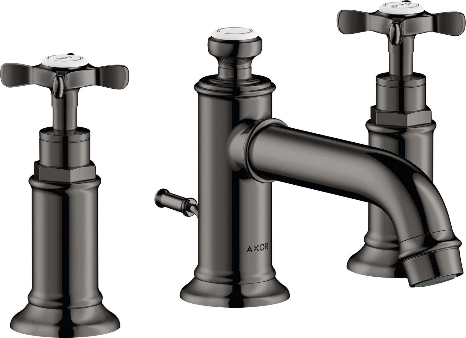 hansgrohe 3-Loch-Waschtischarmatur 30 Axor Montreux Ausladung 143mm, mit Kreuzgriffe, Zugstangen-Ablaufgarnitur, polished black chrome