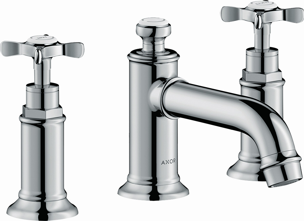 hansgrohe 3-Loch-Waschtischarmatur 30 Axor Montreux Ausladung 143mm, mit Kreuzgriffe, Zugstangen-Ablaufgarnitur, Edelstahl-Optik
