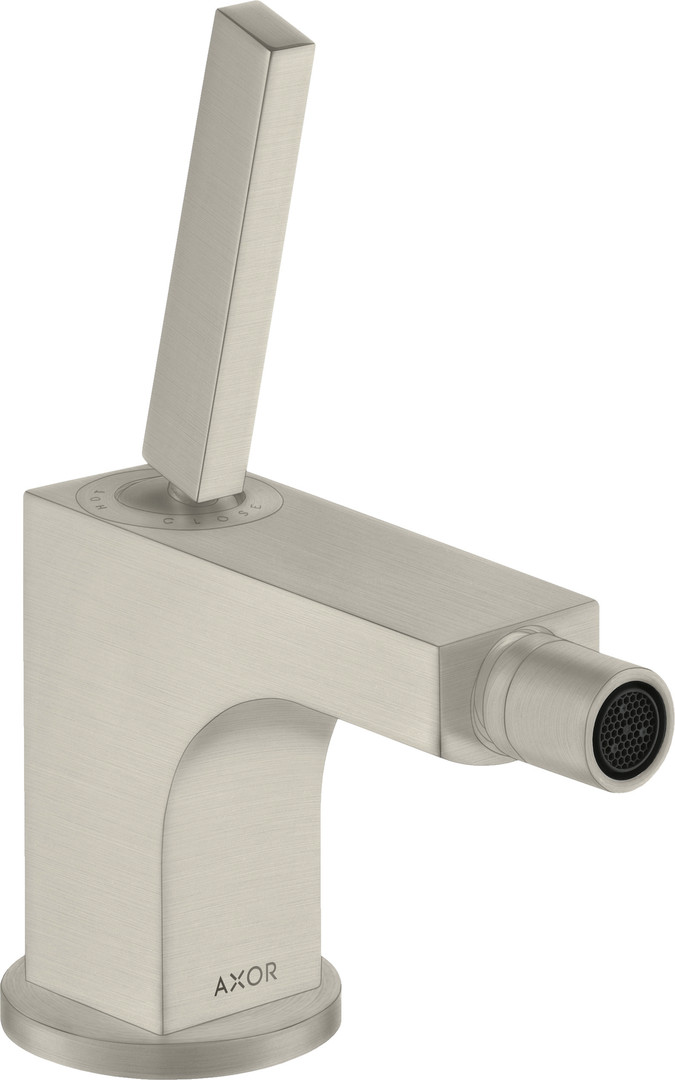 hansgrohe Bidet-Einhebelmischer Axor Citterio Ausladung 112mm, mit Pin-Griff, Zugstangen-Ablaufgarnitur, Edelstahl-Optik