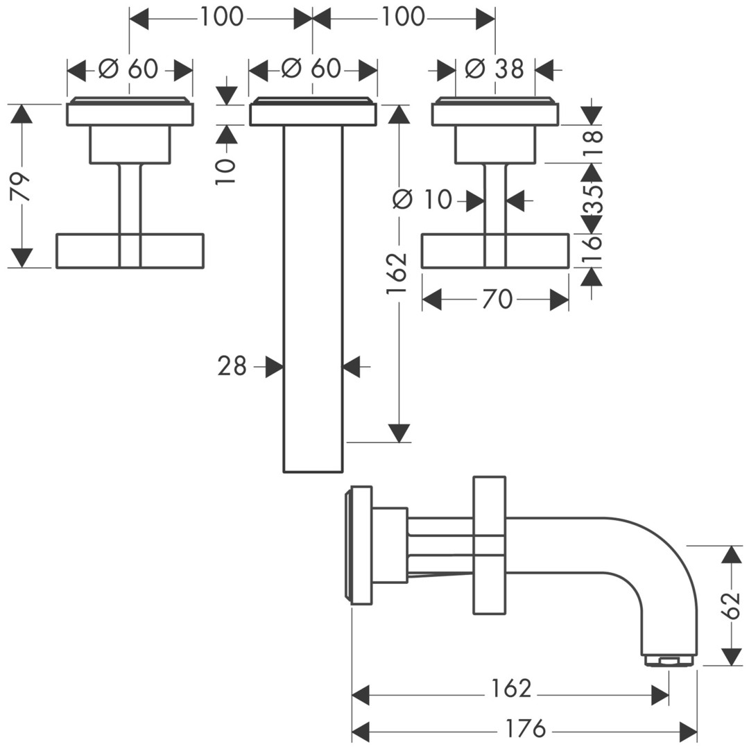 hansgrohe Fertigmontageset Axor Citterio UP-3-Loch-Waschtischarmatur, mit Kreuzgriffen, chrom K20571547