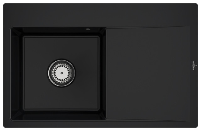 V&B Spüle Subway Style 45 Flat links, mit Ablaufgarnitur, Handbetätigung, ebony