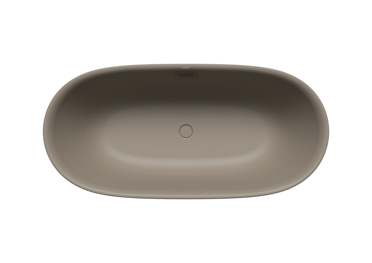 freistehende Badewanne komplett aus Stahl-Emaille gefertigt mit mittig positioniertem Kunststoffablaufdeckel, Ablaufloch Ø 52 mm, bestehend aus: klick-klack Kunststoffablauf und Design-Überlauf und Badewannen-Antidröhn-Set