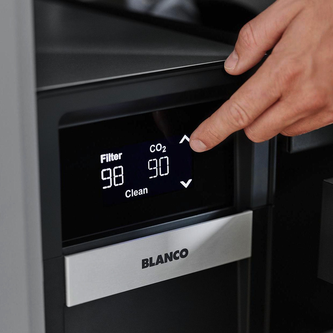 kaltes, warmes, sowie gekühltes, veredeltes Wasser (still, medium und sprudelnd), Kohlensäuregehalt des gefilterten Wassers wählbar über separates Drehrad, separater Auslauf für veredeltes Wasser, 9,3 l/min bei 3 bar Druck, System: Hochwertige Kühl- und Karbonisierungseinheit, 1,4 l gekühltes Wasser im System gespeichert und jederzeit verfügbar, dauerhafte Kühlleistung von 8 l pro Std. (abhängig von der Wasserzulauftemperatur), Temperatur im Inneren der Kühl- und Karbonisierungseinheit zwischen 4 und 10 °C, High-End Wasserfiltersystem von BWT mit Filterkopf und mehrstufiger Filterkartusche, Touch-Display-Menü mit Kapazität der Filter und CO2, 220-240 V AC/50 Hz, Nennleistung 190 W, kompatibel mit der BLANCO UNIT App für iOS- und Android-Geräte, 1 Getränkefilter Soft S, 1 CO2-Flasche und 1 Reinigungsset im Lieferumfang enthalten, Armatur: 5-1 semiprofessionelle Armatur, Click & Touch (Auswahl vordefinierter Wassersorte und Menge in ml dank Skalierungsgrad und intuitiver Touch-Steuerung, separater 180° schwenkbarer Auslauf für gereinigtes Wasser, 360° schwenkbarer Auslauf für gemischtes Wasser, mit Keramik-Kartusche, zweistrahlige Brause für gemischtes Wasser mit Magnethalterung, Stabilisierungsplatte, im Lieferumfang enthalten: Soda-Kühl- und Karbonisierungseinheit, Soda CO2-Zylinger, BWT EasyCare Adapter, BWT EasyCare Tab, Drink Filter Soft S