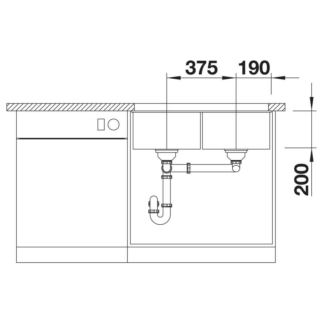 Beckentiefe 20/20 cm, 2 in 1: 2 Becken (ein Ausschnitt und nur einmal montiert), mit Überlauf C-overflow und Ablaufsystem InFino, Ablaufgarnitur mit Raumsparrohr, Ablaufverbindung, 2x 3 1/2 InFino-Korbventil, Befestigungsset, Unterbau, Untermaß 80 cm