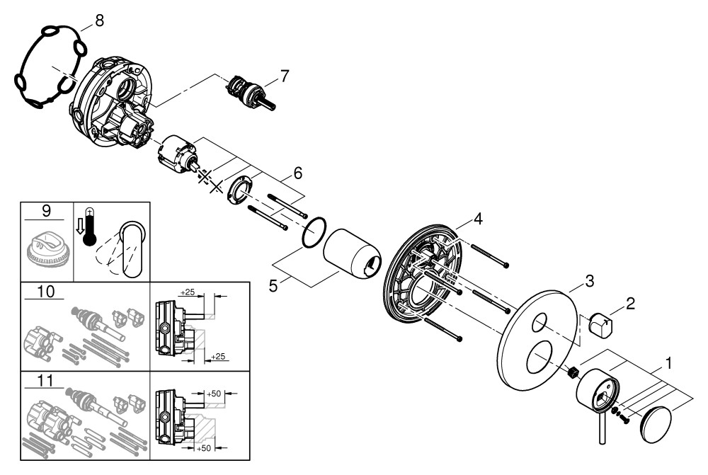 GROHE Fertigmontageset Atrio UP-Einhebelmischer, mit 3-Wege Umstellung, chrom K20547291