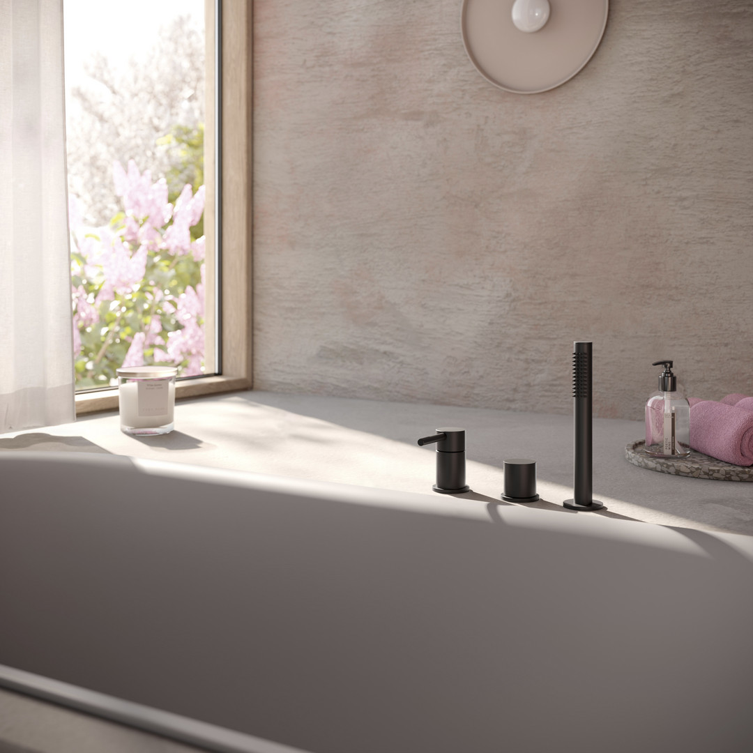 Herzbach Fertigmontageset Siro Wannen-3-Loch-Armatur, schwarz matt