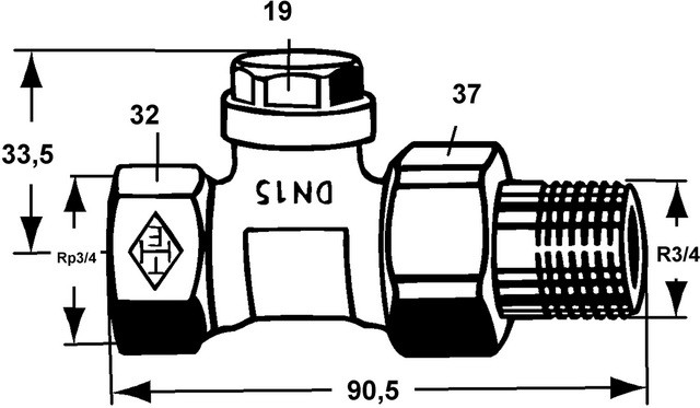 Heizkörper-Rücklaufverschraubung mit reproduzierbarer Voreinstellung und Entleerung, wird in Pumpenwarmwasser-Heizungsanlagen und Klimaanlagen eingesetzt, sie ermöglicht das individuelle Absperren, Entleeren und Füllen von z. B. Heizkörpern, um Maler- oder Wartungsarbeiten ohne Betriebsunterbrechung anderer Heizkörper durchführen zu können, der im Absperrkegel integrierte Regulierkegel ermöglicht den hydraulischen Abgleich durch Voreinstellung, DN 10-20, Druckklasse PN 10, max. Betriebstemperatur 120 °C, min. Betriebstemperatur -10 °C, Gehäuse aus korrosionsbeständigem Rotguss, Ventilgehäuse und Anschlussverschraubung vernickelt, Baumaß nach DIN 3842-1, das Gehäuse mit Innengewinde ist ausgelegt für den Anschluss an Gewinderohr oder in Verbindung mit Klemmverschraubungen für Kupfer-, Präzisionsstahl- oder Verbundrohr (nur DN 15), S1 DN 10/22 mm, DN 15/27 mm, DN 20/32 mm, S2 DN 10/27 mm, DN 15/30 mm, DN 20/37 mm, S3 DN 10-20/19 mm