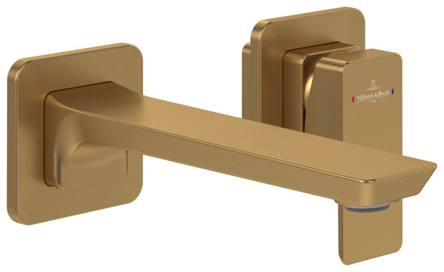 V&B Zweiloch-Einhebelwaschtischmischer Subway 3.0 fester Auslauf, ohne Ablaufgarnitur, Wandmontage, brushed gold