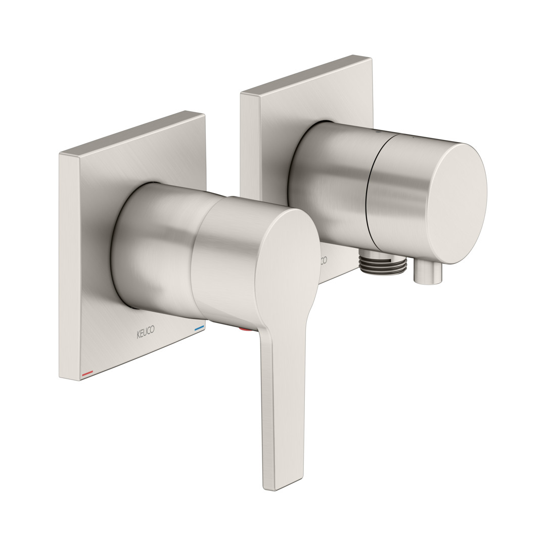 KEUCO Fertigmontageset Edition 11 Unterputz, mit Schlauchanschluss, für 2 Verbraucher, nickel gebürstet K22755134