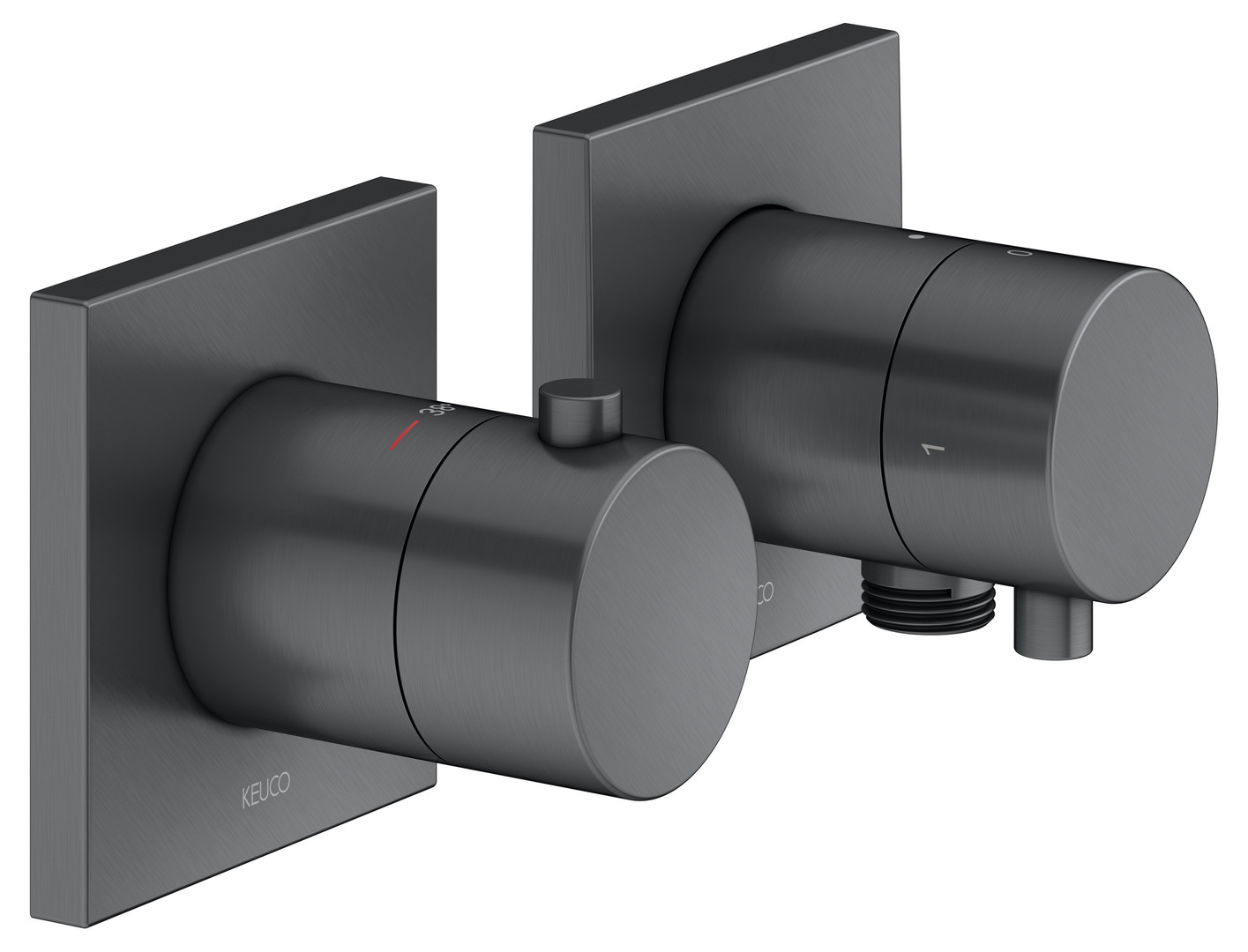 KEUCO Fertigmontageset Edition 11 Unterputz-Thermostatarmatur, mit Schlauchanschluss, für 2 Verbraucher, schwarzchrom gebürstet