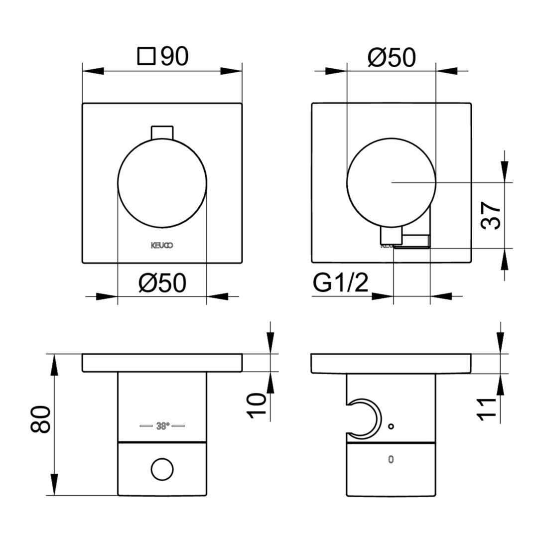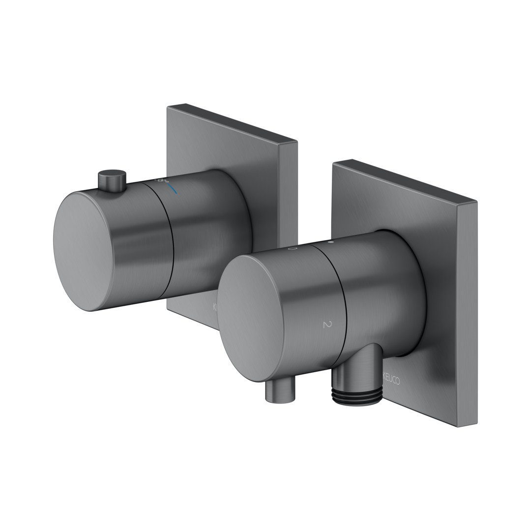KEUCO Fertigmontageset Edition 11 UP-Thermostatarmatur, mit Schlauchanschluss, Brausehalter, für 2 Verbraucher, schwarzchrom gebürstet