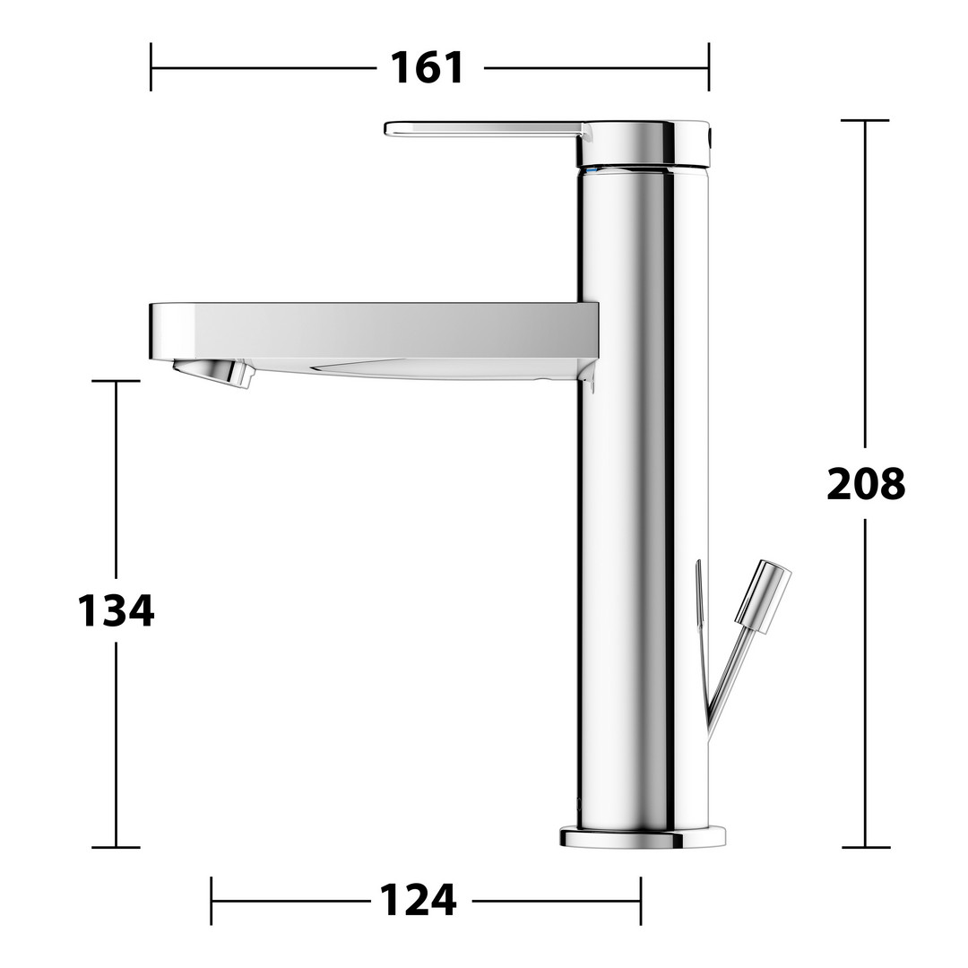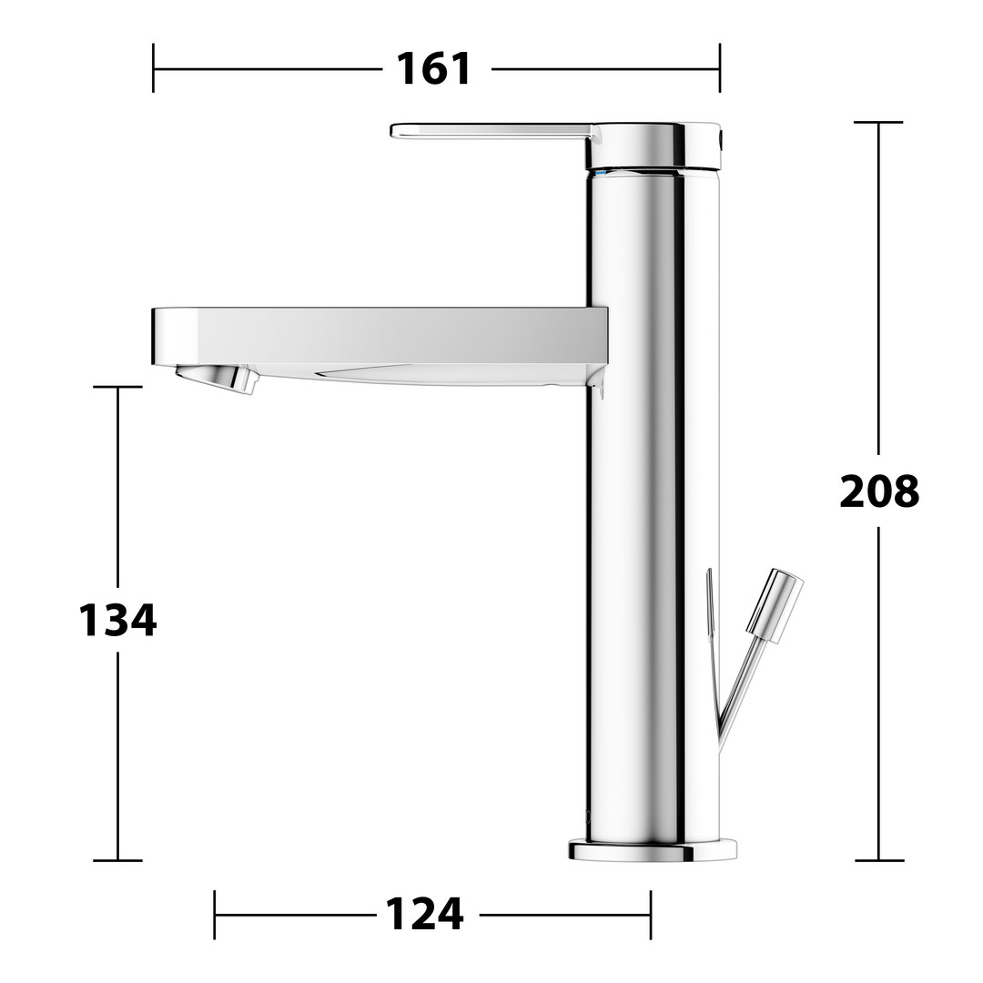 KEUCO Waschtisch-Einhebelmischer 130 IXMO Flat Ausladung 124mm, mit Ablaufgarnitur, verchromt