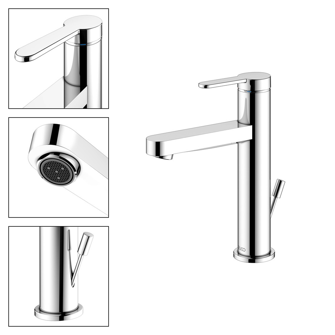Auslaufhöhe 134 mm, Einlochmontage mit Schnell-Montage-System, Anschlussart Anschlussschläuche G 3/8, Mischwasserkartusche mit keramischen Dichtscheiben, mit Temperaturbegrenzung, Strahlregler M 24 x 1, Strahlwinkeln+/-6° verstellbar, Durchflussmenge begrenzt auf 7,6 l/min, für Durchlauferhitzer geeignet, geräuschgeprüft