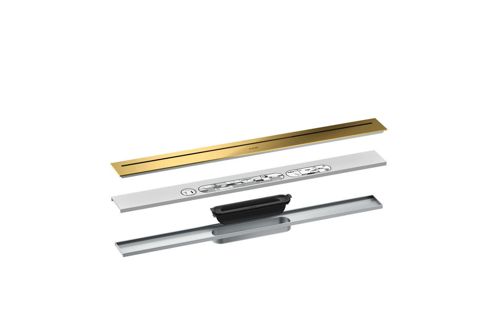 hansgrohe Duschrinne Drain 700mm, Fertigset, frei im Raum, polished gold optic