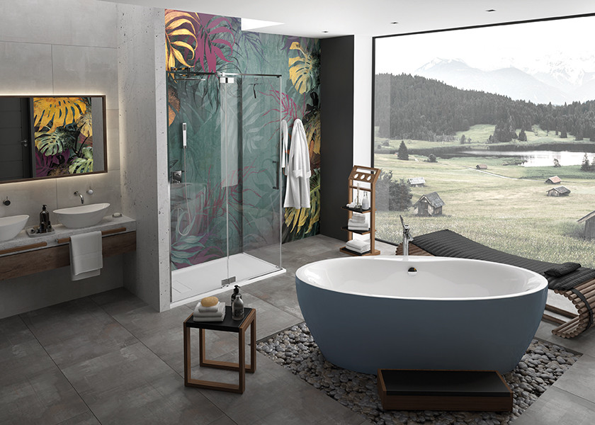 Hoesch Freisteh-Badewanne Cabo 185x90cm, 155 l, Überlaufbefüllung, chrom, schiefergrau-weiß