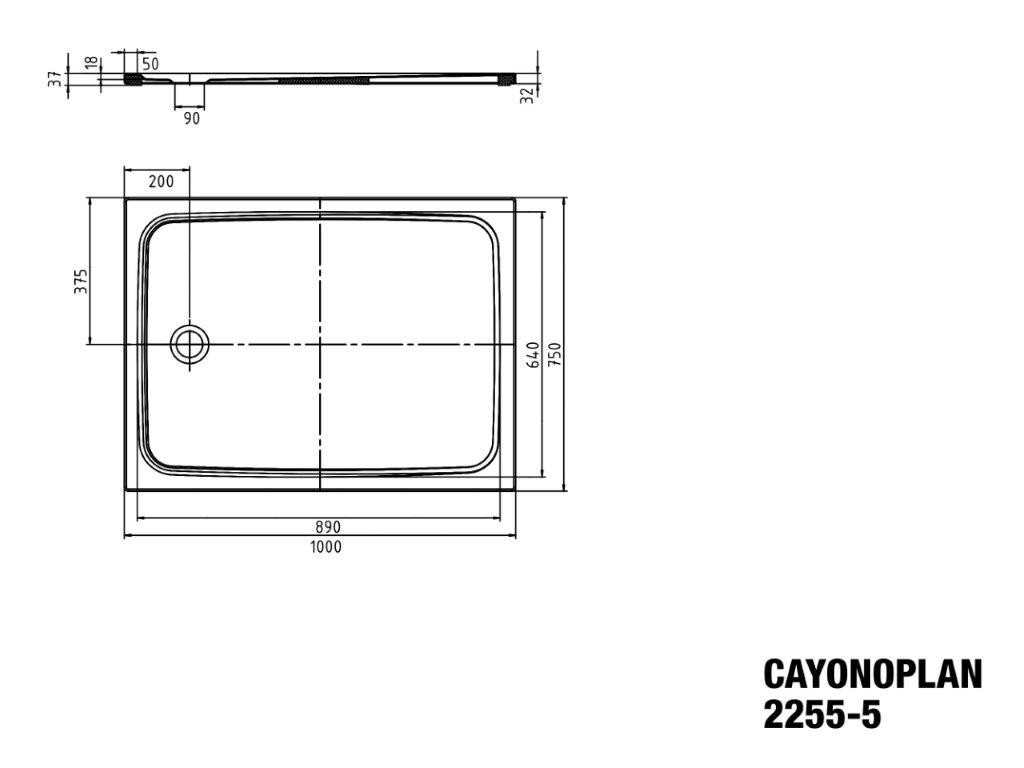 Kaldewei Duschwanne CAYONOPLAN 2255-5 75x100x1,8cm, mit Träger, ohne Effekt/Antislip, weiß K7186108