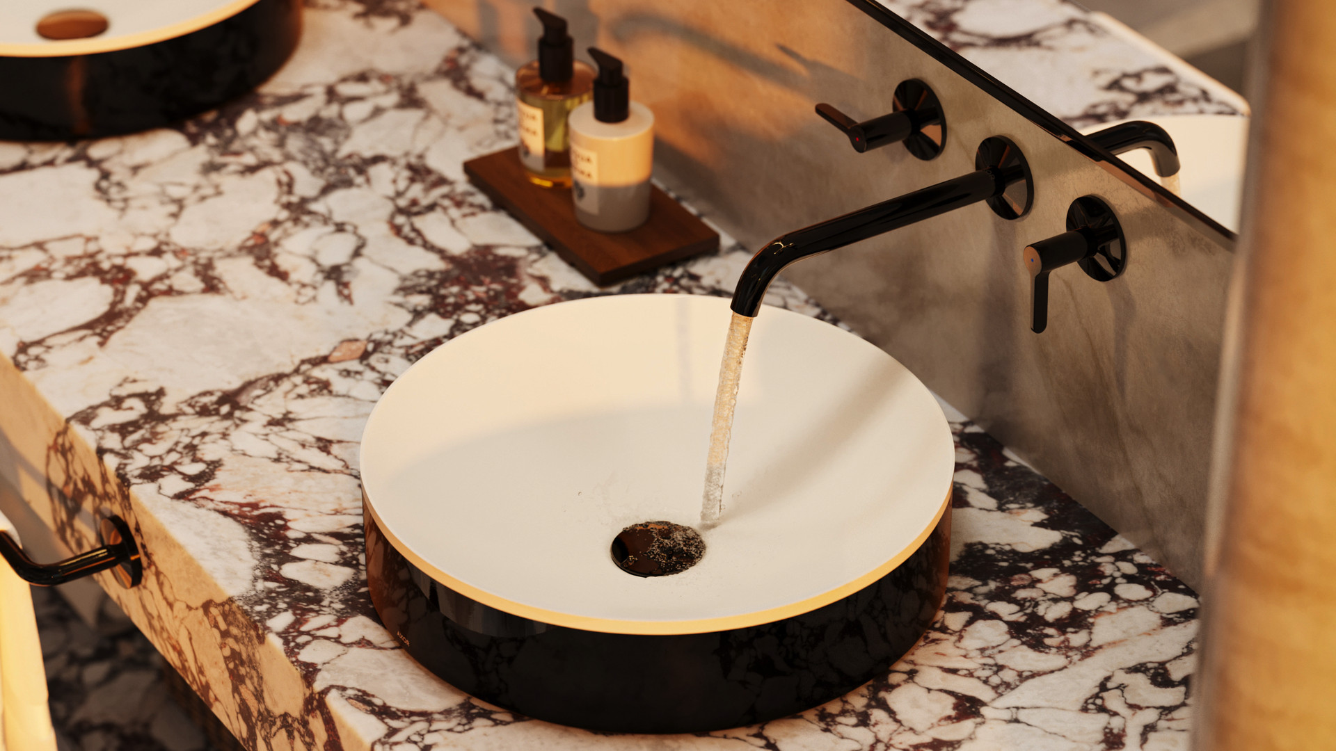 bestehend aus Aufsatzwaschtisch und Designrahmen, Material SolidSurface, Beckeninnenhöhe 80 mm, Material Rahmen Metall, Glanzgrad Keramik matt, ohne Hahnloch, ohne Überlauf, ohne Ablaufgarnitur, nur mit nicht verschließbaren Ablaufbentilen kombinierbar