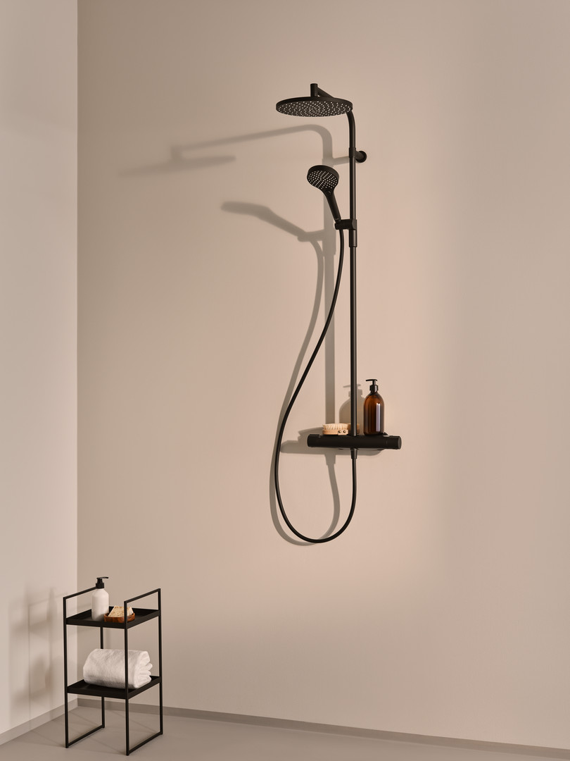 HANSA Duschsystem HANSAVIVA Regenbrause, Thermostat, Wandmontage, matt-schwarz K22096643